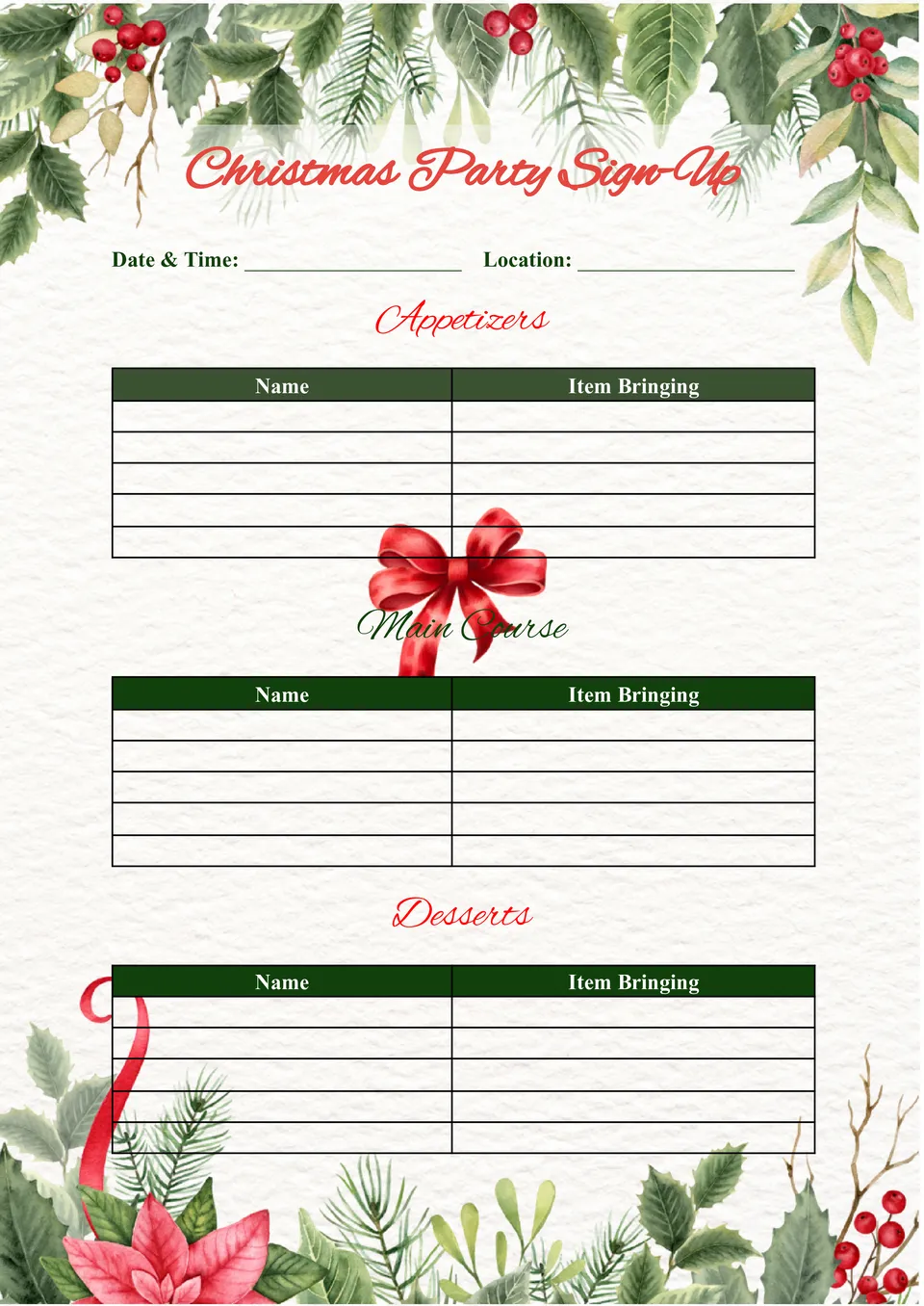 Plantilla de Hoja de Registro para Fiesta de Navidad