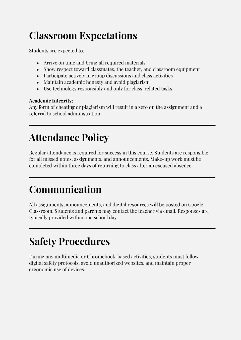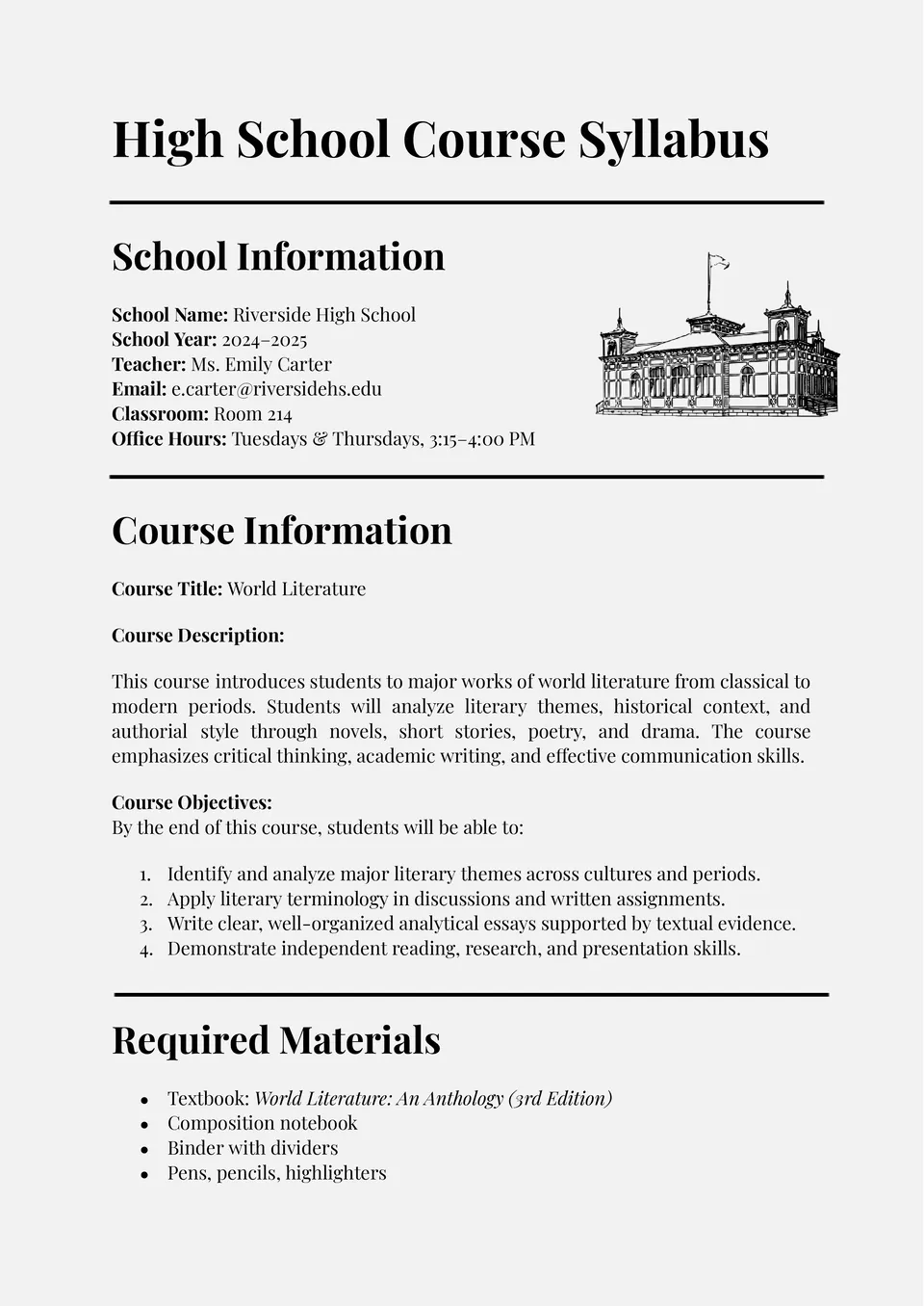 Plantilla de Programa de Curso de Escuela Secundaria