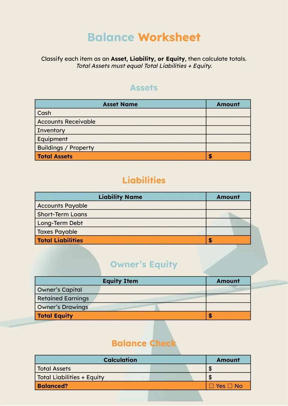 The Financial Worksheet Template provides a centralized format for organizing income, expenses, projections, and financial goals. It’s perfect for entrepreneurs, analysts, and personal planners who need a snapshot of financial health.