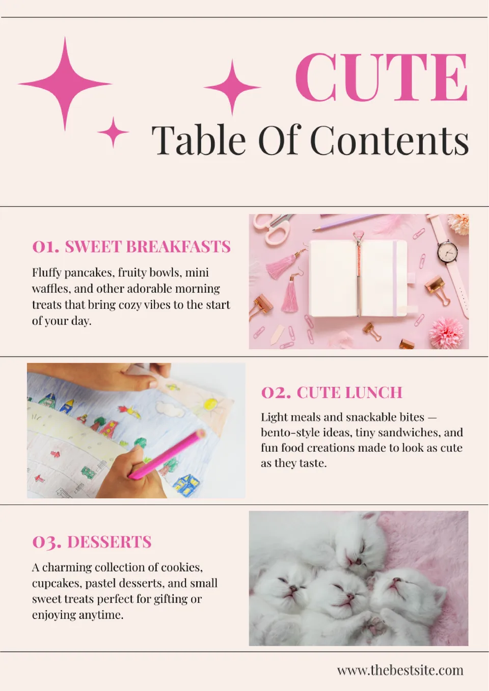 The Aesthetic Table of Contents Template adds style and balance to your creative documents. With modern design elements and gentle colors, it works perfectly for journals, portfolios, blogs, and ebooks.