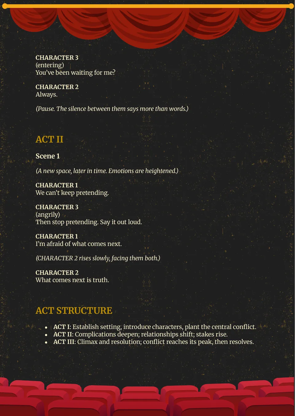 Trying to format your screenplay correctly without wasting hours? The Film Script Template provides industry-style layout for scenes, action, and dialogue.